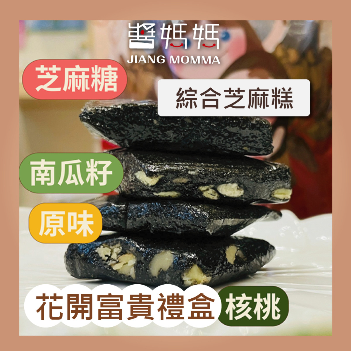 醬媽媽【花開富貴禮盒】(白芝麻醬/綜合堅果/花生醬)++綜合黑芝麻糕