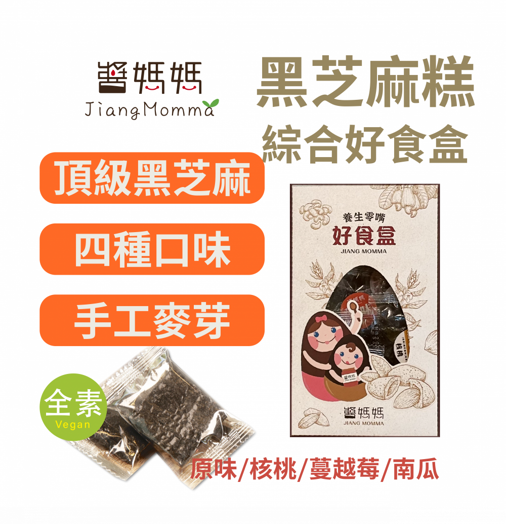 ▸養生零嘴好食盒(黑芝麻糕-綜合) 內容物:黑芝麻糕(原味、核桃、南瓜籽)、黑芝麻糖 280g/盒 一次就能品嘗四種黑芝麻糕經典口味! 讓您舌尖味蕾感受到濃濃黑芝麻香氣超誘人,越吃越上癮! 黑芝麻糕原味、核桃、南瓜籽,黑芝麻糕混合堅果多層次口感,好好吃! 醬媽媽帶著醬寶一起亮相,卡哇依的日系包裝設計,醬媽媽以給家人吃的健康為初衷,嚴選天然無添加的穀物抹醬系列,嚴格把關每一項產品,讓家人安心食用,送禮送健康,養生好禮就在醬媽媽。