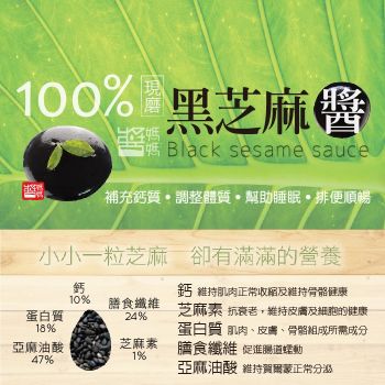 黑芝麻的營養價值豐富,它富含豐富的植物性油脂、膳食纖維、蛋白質和鈣質,對維持身體健康有極大幫助。每一口黑芝麻醬都能讓您輕鬆享受營養補充,無論是直接食用,還是加入料理中,都能讓您輕鬆攝取對健康有益的天然營養。